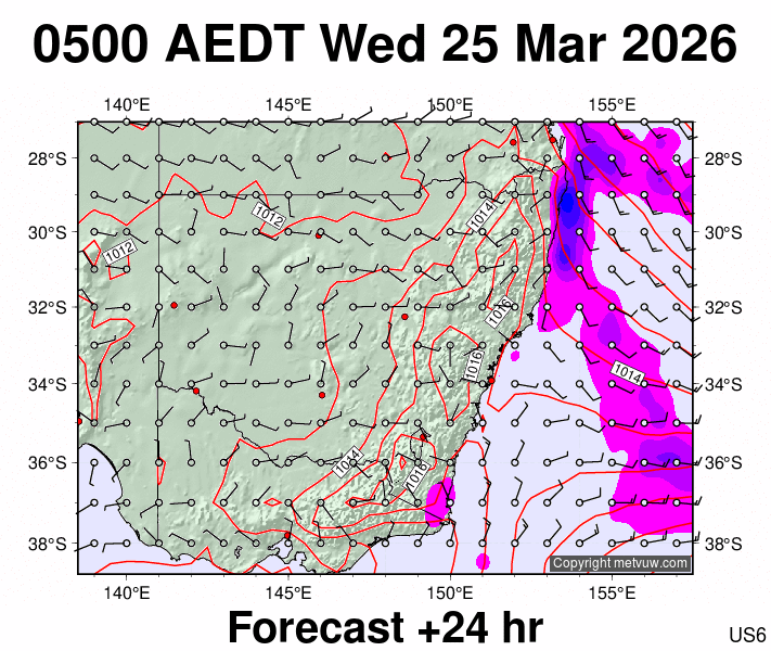 Forecasts issued at:- 0500 AEDT Tue 24 Mar 2026 (1800 GMT Mon 23 Mar 2026)