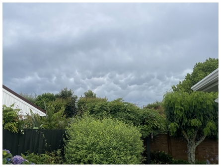 ![]() 'Taken in Mellons Bay Howick. Looking south southeast towards Botany/Whitford area of East Auckland. It is mammatus cloud formation following some intense thunderstorm activity in the area today. Taken 18:11 Wednesday 3 December 2025 on my iPhone 12, 26mm wide angle, f 1.6, 1/672 sec, ISO 32' wrote Geoff. Photo of the Day - Wednesday 3 December 2025